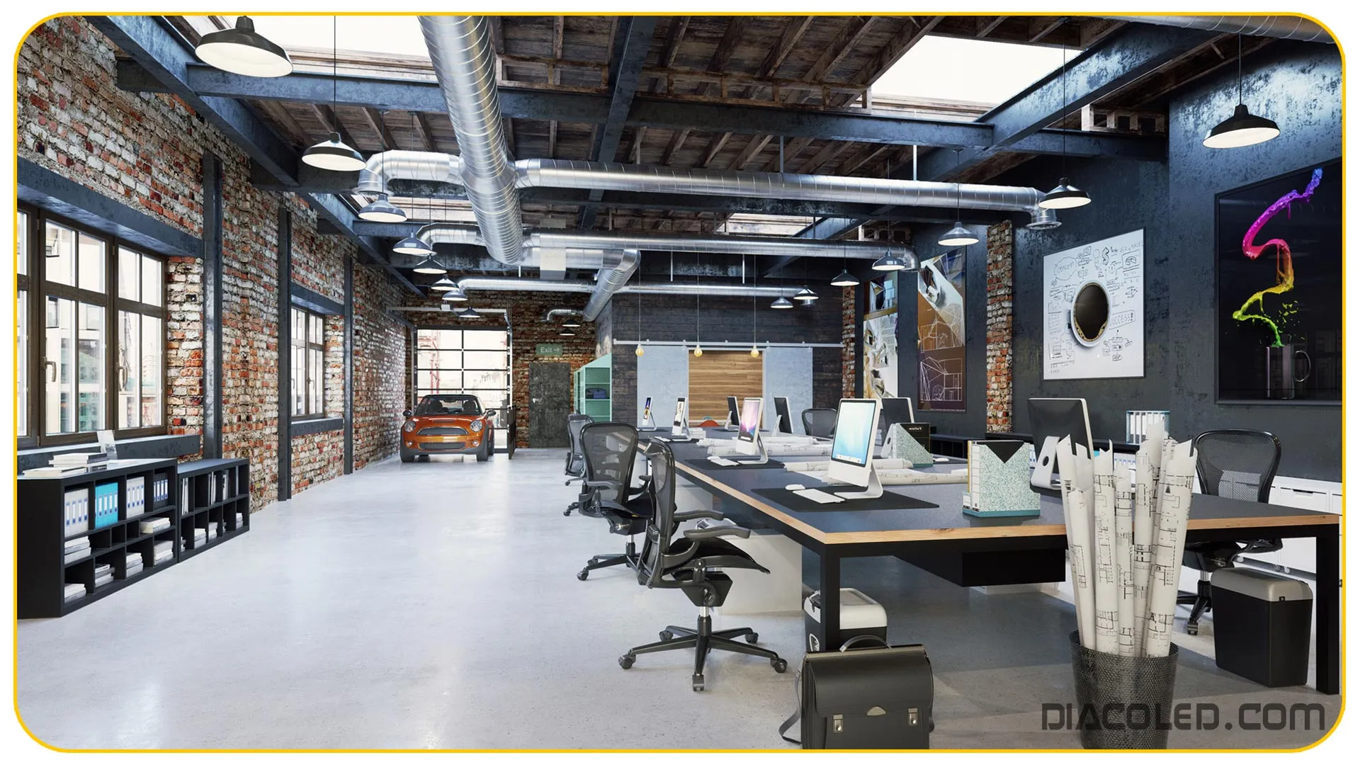 سبک صنعتی، یکی از بهترین گزینهها برای طراحی دکوراسیون شرکت خصوصی شماست. در آن از عناصر خام با ظاهر نهچندان تمیز و صیقلی مانند دیوارهای آجری، سقفهای بتنی، لولههای در معرض دید و چراغهای آویز بهوفور استفاده میشود. بهخصوص اگر در بخش صنعت فعالیت میکنید، متناسب با نوع محصول یا خدمات خود میتوانید از این سبک نهایت بهره را ببرید. سبک طراحی اداری صنعتی، روشی خلاقانه و منعطف است؛ بهگونهای که هم استارتاپها و هم شرکتهای بزرگ از آن استفاده میکنند.