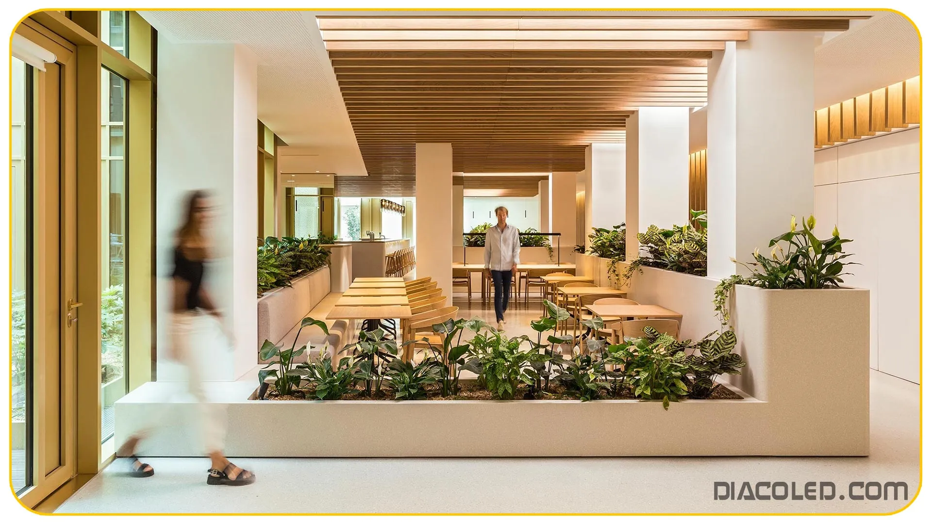 10- در صورت امکان، یک فضای سبز داخلی با نصب گلدان و درخچههای طبیعی بهمنظور تصفیه هوا ایجاد کنید.