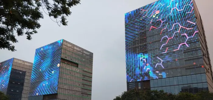 در پروژه محله چینی شیان سیهای نیز نمایشگر LED بهطور کامل با ساختمان یکپارچه شده است. این امر، توانسته اثر منحصربهفردی را در منظره شهری اطراف ایجاد کند. این موارد همگی نشان میدهند که با کمی خلاقیت و ایده پردازی میتوان طراحیهای مختلفی را برای یکپارچه سازی نمایشگرهای LED با ساختمانها و محیط اطراف پیشنهاد کرد.