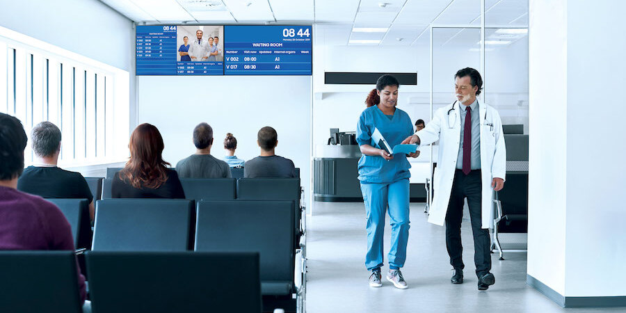 نمایشگرهای LED با نمایش اطلاعات مربوط به خدمات جدید، تجهیزات پیشرفته و متخصصان بیمارستان، نقش مهمی در معرفی قابلیتهای مرکز درمانی ایفا میکنند.