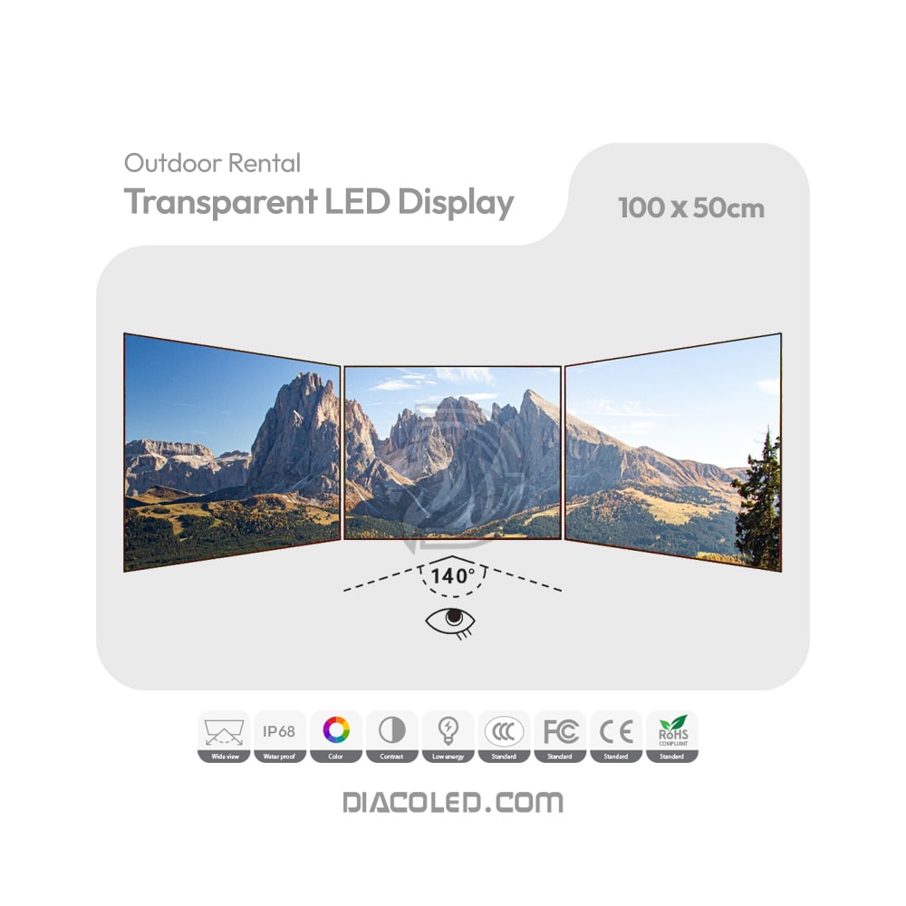 نمایشگر شفاف رنتال اوتدور، باریک، محکم، بدون درز، شفافیت تا 70%.