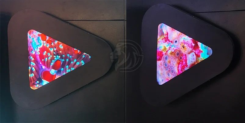 فرم مثلثی این نمایشگر، از قالبهای مرسوم مستطیل فاصله گرفته و در هر محیطی به سرعت توجه بیننده را به خود جلب میکند.