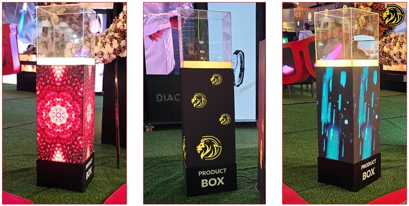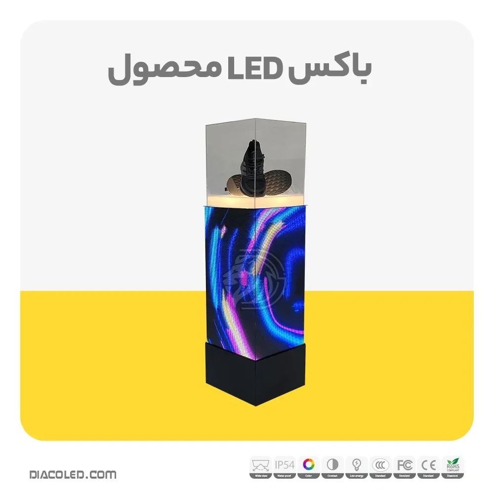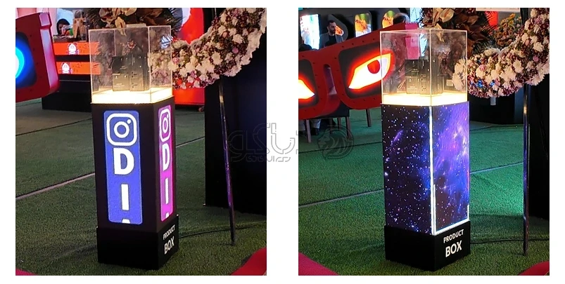 این محصول، یک باکس نمایش محتوای مدرن و تبلیغاتی می باشد که بدنه آن از نمایشگر led ساخته و در قسمت بالایی آن یک محفظه شفاف قرار گرفته است.