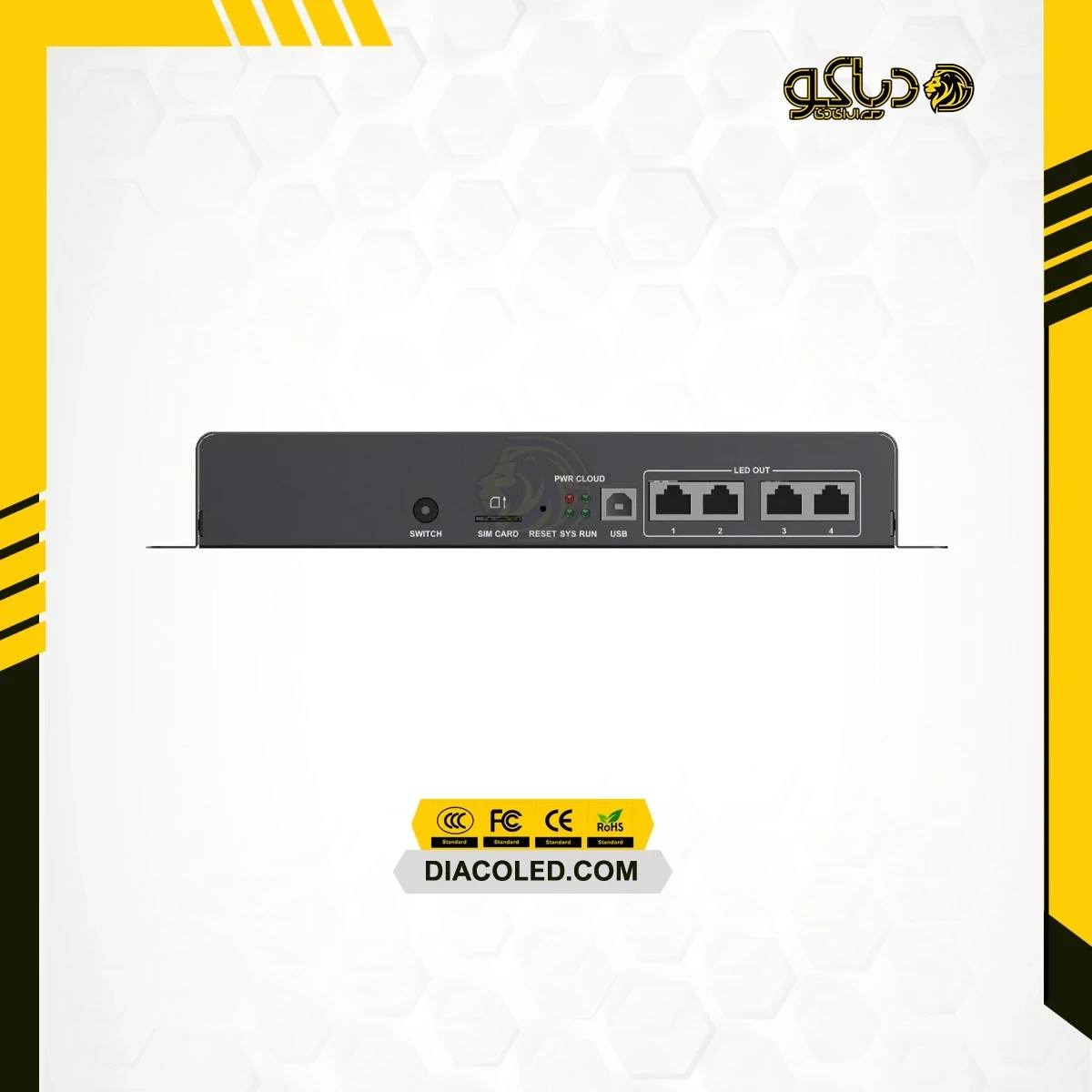 _ پورت ورودی: 8 پورت (USB 2.0 Type-A — برای پخش محتوا از USB فلش/هارد ، USB 2.0 Type-B — برای اتصال به کامپیوتر، یک عدد HDMI، یک عدد سوکت آنتن Wi-Fi برای اتصال مدیریت بیسیم، سوکت آنتن 4G برای استفاده از اینترنت موبایل، دو عدد سنسور تنظیم دما و رطوبت)